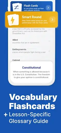 Bump into an unfamiliar word? We've got you covered with our content-focused flashcards and dictionary that boost your vocabulary, an essential tool for studying for your US Civics Test.