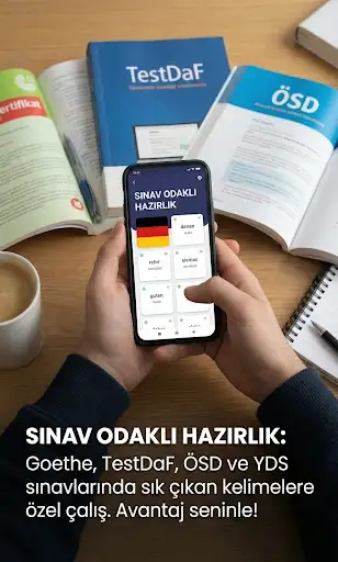 Goethe, TestDaF, ÖSD, YDS ve YÖKDİL gibi zorlu sınavlara mı hazırlanıyorsun? En çok çıkan kelimeler ve gramer yapılarıyla rakiplerinin önüne geç.