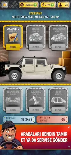 Her anlaşma ayrı bir hikâyedir. Bazı satıcılar acil satmak ister ve fiyattan düşer, bazıları kusurları gizlemeye çalışır, bazı alıcılar ise hayallerindeki aracı arar ve kusursuzluk için daha fazla ödemeye hazırdır. Nasıl oynayacağına sen karar verirsin — büyük kârlar için risk almak ya da istikrarlı ve güvenilir bir iş kurmak. Adım adım itibar kazanır, sermayeni büyütür ve küçük bir işi gerçek bir otomotiv imparatorluğuna dönüştürürsün.