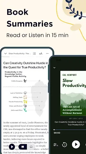 Books: Dive into summaries of bestselling books in just 15 minutes.