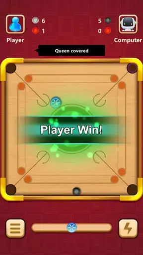 CLASSIC CARROM: Each player must shoot a carrom ball of their preferred color into the hole before chasing after the red ball, sometimes referred to as the "Queen"; upon striking the Queen, the last ball to be struck in a row wins the actual carrom board offline game.