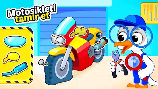 Her aracın bakıma ihtiyacı vardır: motosikleti tamir et, traktörü tamir et, ekskavatördeki hasarlı parçaları değiştir ve hatta itfaiye aracının harekete geçmeden önce hazır olmasına yardımcı ol! Her görev, araç tamirinin heyecan verici sürecinde yeni bir adımdır.