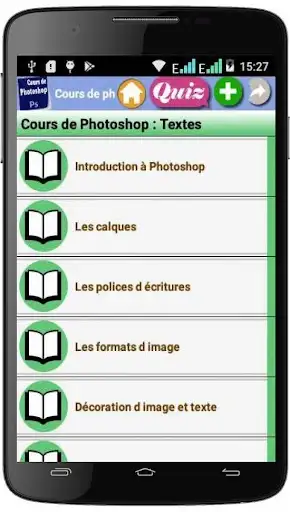 Les cours sur les thèmes suivants sont présents dans notre application :