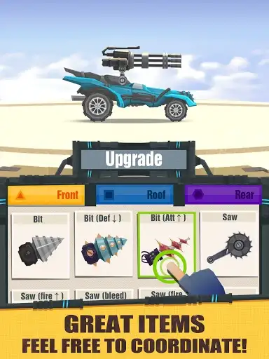 • Upgrade – Level up your weapons and cars so that you will be able to knock down the opponents!