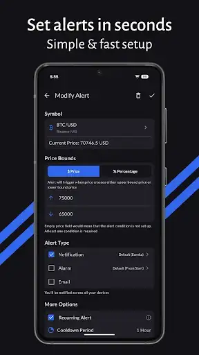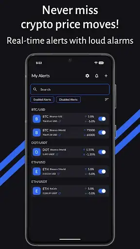 Most crypto apps are cluttered with charts and features you may not need. This app is built for one purpose: Fast and reliable crypto alerts with alarm.