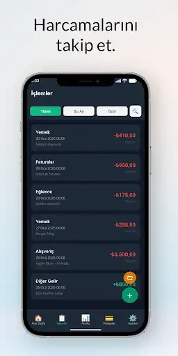 Sade arayüzü ve hızlı kullanımıyla kişisel finansını kontrol altına almanı sağlar