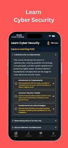 AI-Powered Learning: The app features a smart AI tutor that guides you through key concepts such as network security, encryption, social engineering, and system vulnerabilities. The AI breaks down complex ideas into digestible lessons, explains terminology, and provides relevant examples from real-world attacks. Whether you're learning about phishing or firewalls, the AI ensures you understand why and how things work before moving forward.