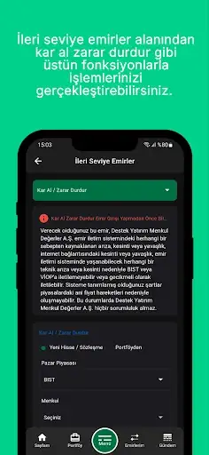Uygulama, kullanıcı dostu arayüzü, gelişmiş grafik ve analiz araçlarıyla yatırım kararlarınızda sizi destekler. Anlık bildirim özellikleri sayesinde önemli piyasa gelişmelerini kaçırmadan takip edebilirsiniz.