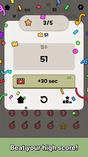 🍎 Oyun sonunda reklam izleyerek 30 saniye ekleyebilirsiniz (tur başına 1 kez).