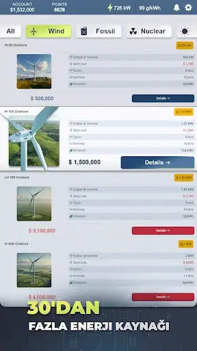 Nextera, Shell, Aramco, Engie veya Iberdrola gibi gerçek enerji ana grupları kadar büyük olabileceğiniz ve tekel iddia edebileceğiniz bir strateji oluşturmak için bir enerji kralı simülatörünün gücünü kullanın. Tokyo, New York, Paris, Madrid ve Şangay gibi önemli şehirler arasında uluslararası bağlantılar oluşturun, planlayın ve keşfedin.