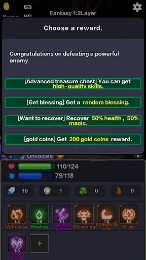 Monsters, treasure chests, skills, health potions, money bags, random events, shops and blessings.
