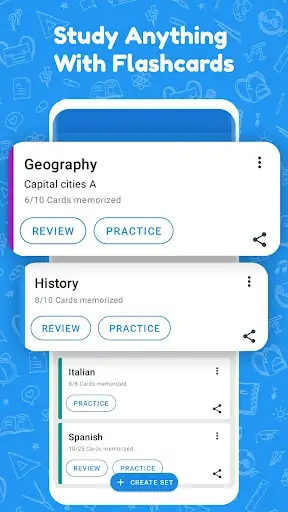 ✔ SHARE SETS: Be able to share any of your sets with your friends.