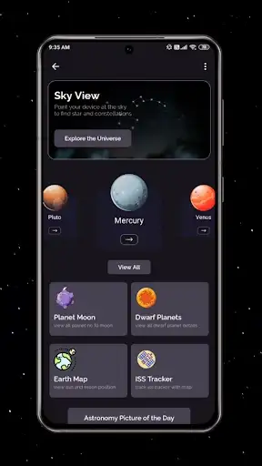 Gece gökyüzünü daha önce hiç olmadığı gibi keşfedin. Night Sky View, yıldızları, gezegenleri ve diğer gök cisimlerini keşfetmenize olanak tanıyan benzersiz bir yıldız izleme deneyimi sunar. Detaylı bilgiler ve nefes kesici görsellerle evrenin harikalarını doğrudan cihazınızdan öğrenebilirsiniz.
