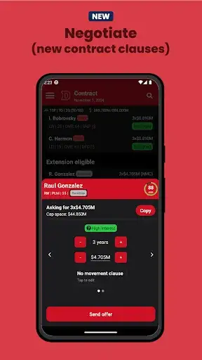 ✍️ Contract Clauses: Handle contract negotiations with new options like No Trade Clauses (NTC) and No Movement Clauses (NMC) to add more strategy.