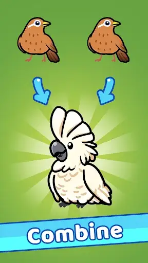 Merge your birds and combine them to upgrade. Discover species such as parakeet, macaw, cockatiel, hornbill, hummingbird, grass owl, penguin, cockatoo, mandarin duck, pheasant, canary, finch, parrot, eagle, peacock, shoebill, eagle, toucan and more.