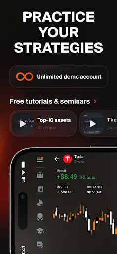 • Smart trading room — clear interface, real-time charts, and intuitive order management.