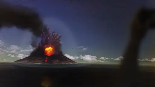 Fireballs the size of trucks rain from above while scorching pyroclastic flows tear down the mountainside at lightning speed—a spectacle of destruction and wonder you won’t believe is simulated!