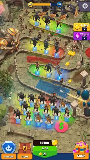 Start by placing basic towers on field. Merge two identical towers to evolve them into powerful new forms with higher damage, faster attack speed. Master your merge strategy to unlock unstoppable defenses.