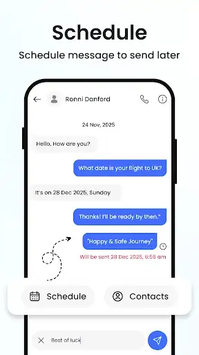 Never miss an important message! You can schedule birthday wishes, work reminders, and more.