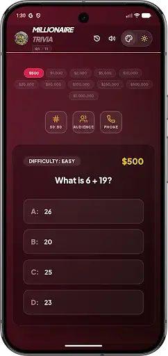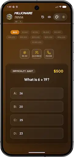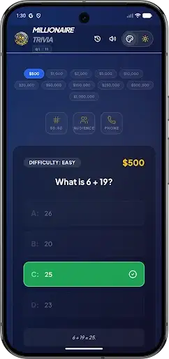 Smart Lifelines - Stuck on a tough question? Use 50-50, Ask the Audience, or Phone a Friend to help you climb the prize ladder! 🤝