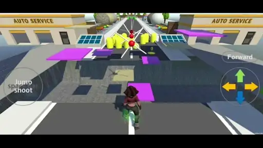 장르14: 점프로 2개단을 올라 4개의 회전하는 장애물을 통과하기.