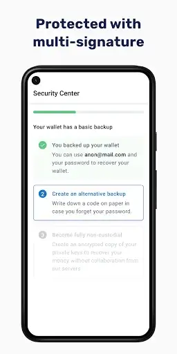 - Convenient wallet recovery: access your wallet from a different phone using a code written on paper or your email and password.