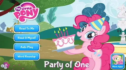 Bold graphics, bright colors and lots of animations make Party of One an enjoyable and engaging way to be entertained and practice reading skills. Perfect for My Little Pony fans and beginning readers.