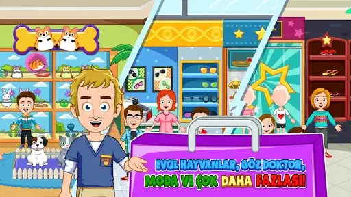 - 3 Katlı Alışveriş Merkezi oyun oynayabileceğin bir sürü mağazayla dolu. Örneği Kek mağazası, Bebek mağazası, Mobil mağaza, Evcil hayvan mağazası, Müzik mağazası ve çok daha fazlası...