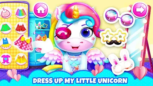 - FEED & BATH your unicorn. Your Kimi is really hungry, prepare to feed Kimi with apple, lollipop, milk and even strawberry cake. Pay attention to the reaction when you feed different foods.