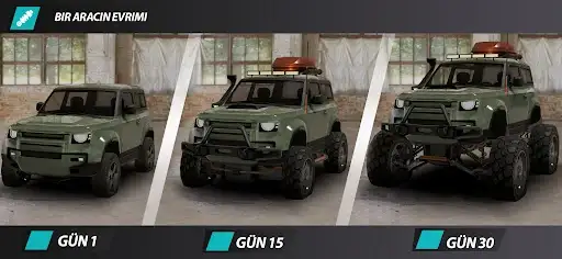 Offroad aracınızı tasarlarken şasi, süspansiyon ve gövde kiti gibi parçaları kendi tarzınıza göre özelleştirebilirsiniz. Sonsuz özelleştirme seçeneğiyle standart bir SUV'yi eşsiz bir offroad canavarına dönüştürebilirsiniz.