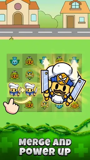 Find and merge two similar heroes and cards to achieve a high-end squad with outstanding stats.