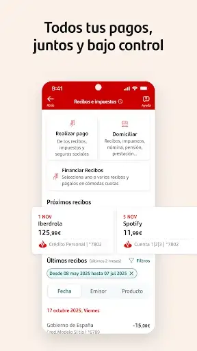 Lleva tu banco siempre contigo con la App Santander, diseñada para hacer tu día a día más sencillo. Gestiona tu día a día (cuentas, tarjetas y pagos), inversiones y seguros con una navegación simplificada.