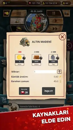 6. Yiyecek, kaynak ve askerlik ekipmanlarını üretin;