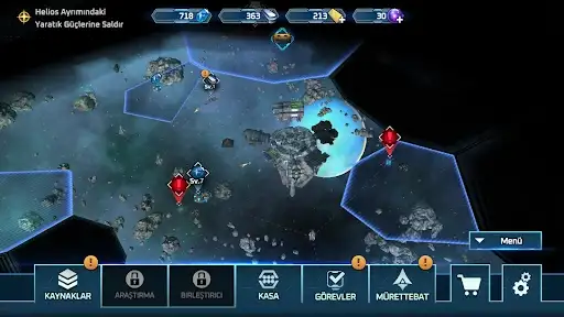 Metal, kristal ve kredi gibi çeşitli kaynaklarla, ana geminizin ve dolayısıyla erişiminizin büyümesini sağlamak için mürettebatınızın yıldız savaşçılarını donatıp yükseltin.
