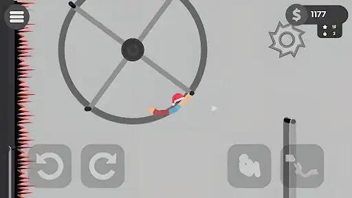 1) Thanks to the very realistic physics of the rag doll, the player controls the stick man with a joystick to move and cling to the horizontal bars.