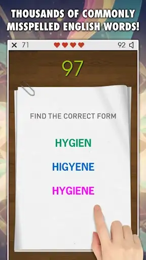 • Extensive word list: Master thousands of commonly misspelled English words.