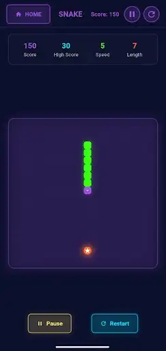 Snake Game: A retro arcade favorite! Guide the growing snake to eat the food and get longer, but be careful not to crash into the walls or your own tail.