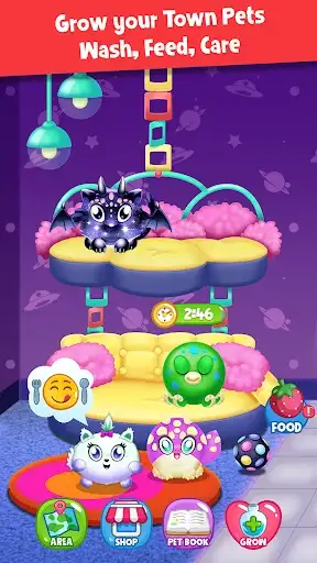 But the fun doesn't stop there! The pet house is fully customizable, allowing kids to let their creativity run wild as they decorate and design their dream home for their beloved cute baby animals. Choose from a wide range of furniture, accessories, and decorations to create the perfect environment for your furry friends. So what are you wating, download Town Pets 2, hatch eggs, and grow animals to become big!