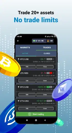 Explore 20+ crypto assets in a full paper trading simulator. Learn trading forex and crypto, trade USD, EUR, Bitcoin, Ethereum, and more.