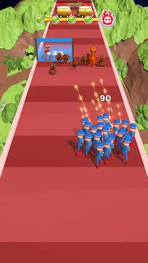 Equip powerful weapons, command your growing army, and fight your way through increasingly challenging stages. Upgrade your attack power, critical strike chance, and starting soldier count to handle tougher enemies and survive longer runs. The balance between firepower, strategy, and decision-making is key to victory.