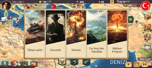 Sıra tabanlı savaşlara katılın, savaş meydanında düşmanları yenin, sabotaj yapın, casus gönderin, nükleer saldırılar başlatın!