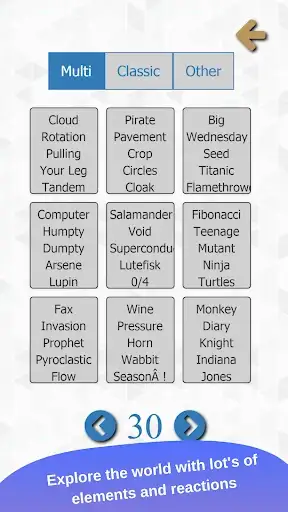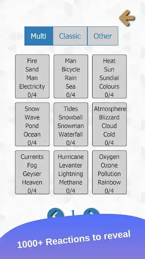 Discover new elements with little alchemy reactions with a combination of 2 or more elements. Check all your revealed reactions at any time. Reaching a specific target get different badges.