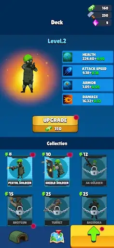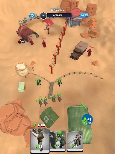 🎖 Choose Your Path: Leveling up presents you with three unique abilities—boost attack speed, fire rate, or other enhancements to customize your soldiers and adapt to your strategy.