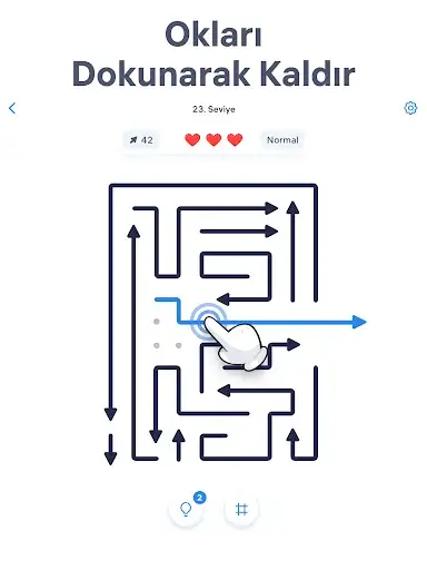 • Boş bir yol bularak ok bulmacası ızgarasından kaç. Oklar sadece önündeki yol açıksa ve başka oklar onların yolunu kapatmıyorsa hareket edebilir. Dokunmadan önce biraz düşün.