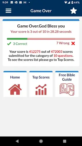 - After you answer the question, it will show you if it is correct or not and show the scripture reference.