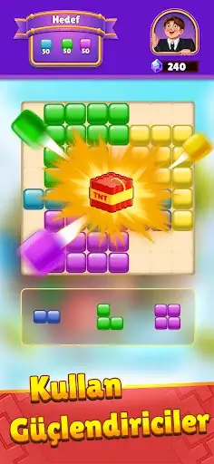 - Basit Kontroller: Sadece blokları sürükleyin, bırakın ve patlatın!
