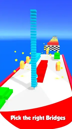 In this unique bridge stacking game, stack the bridges with the same color as the player, and move away from the wrong bridge colors. Stack enough color bridges to build a bridge tower. Use stacked bridges to build a bridge way to run through. More bridge, more fun.