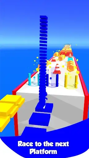 Stack and race through the obstacles and reach the finish line. Watch out for the traffic cones.
