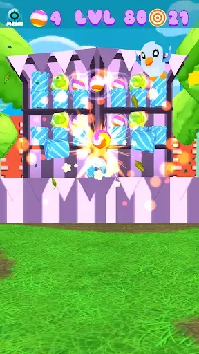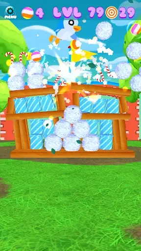 The targets are arranged in various formations and remember that the player have a limited number of ball to throw, a lot less than the number of targets. Plan, think ahead and strategize how best to destroy the stacks and/or formation in batch. Hit ice cubes and ice panels to break them. Sometimes it's best to try to knockdown as much targets as possible. But sometimes a well aimed shoot can produce chain reactions, causing more objects (such as targets on top of one another) to fall. For example, in the situation where the targets stand above ice, it may be better to target the ice and break them so that the target falls, rather than knocking down the targets, which may take more hits and throws.