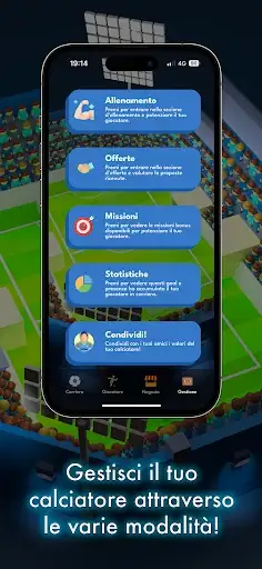 All'interno del gioco avrai diverse modalità, tutte collegate alla carriera del tuo calciatore: